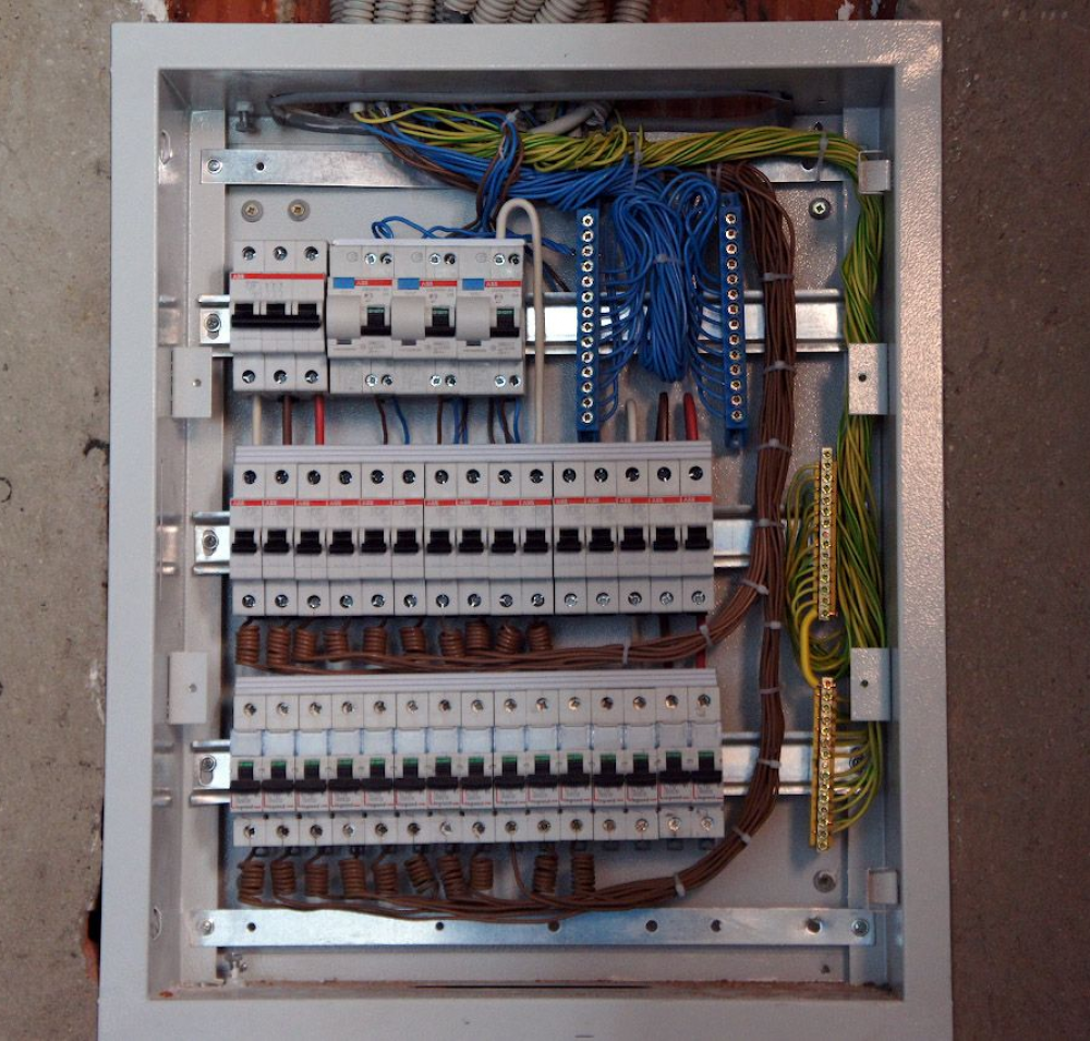 После того как в квартире провели все провода под розетки, выключатели, освещение и другие потребители, их все ведут к электрощитку. Это пластиковый шкаф, в котором устанавливают устройства защитного отключения, которые похожи на выключатели. Обычно на одно устройство подключают 5–10 потребителей. Их ставят для предупреждения перегрева проводки.
