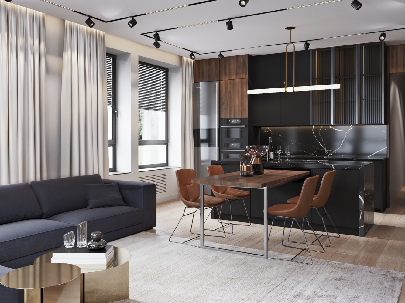 Ремонт с использованием лучших технических решений и материалов: крупноформатный керамогранит, массивная доска и камень