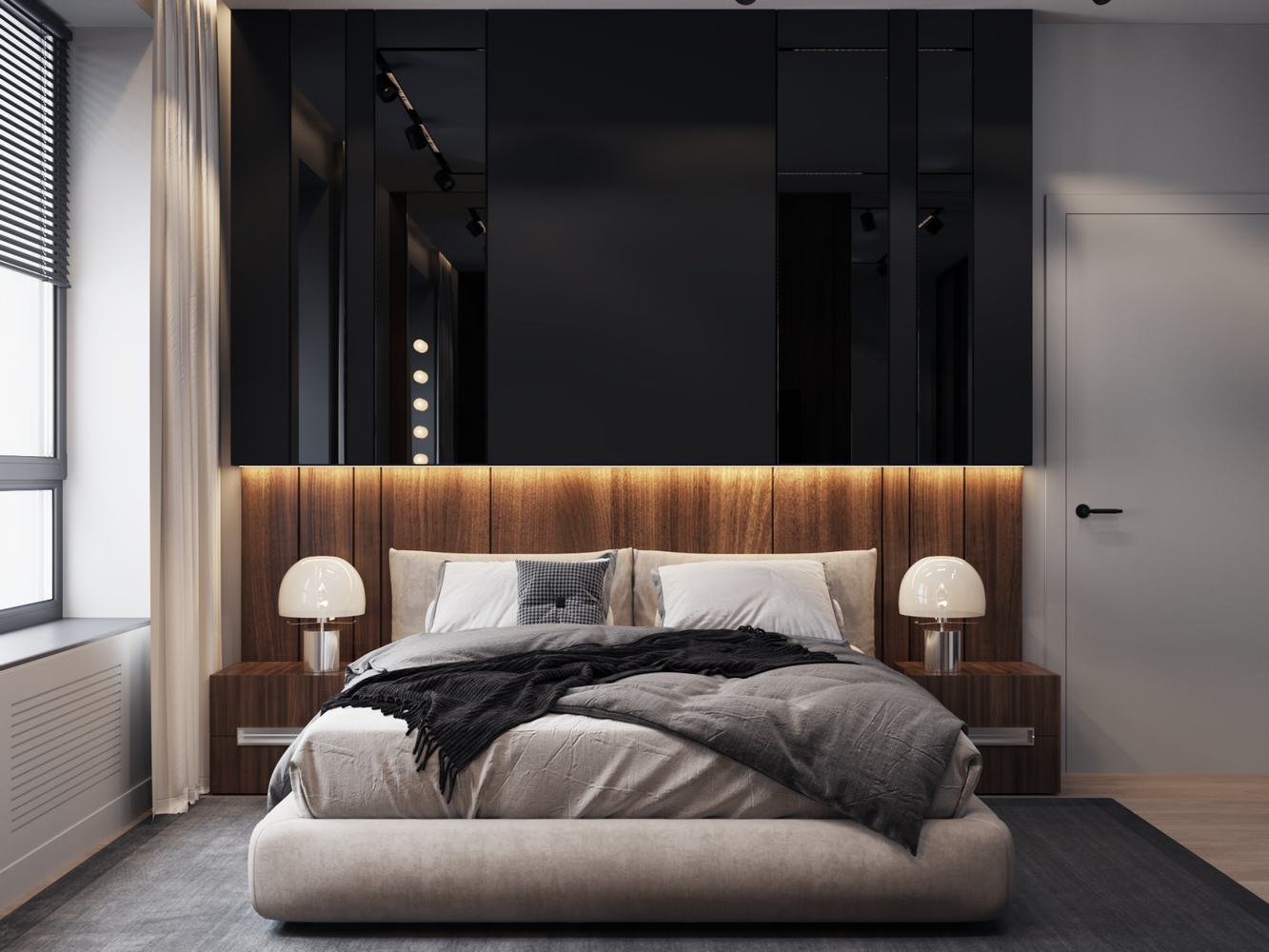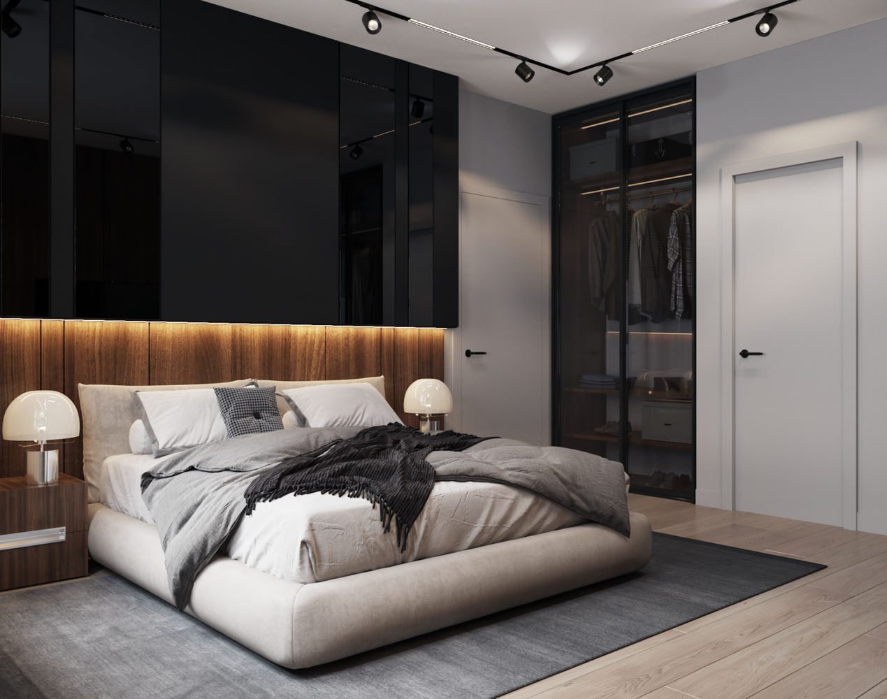 Ремонт с участием дизайнера. Используются современные решения: крашенные стены, инженерная доска, скрытые двери и плинтуса